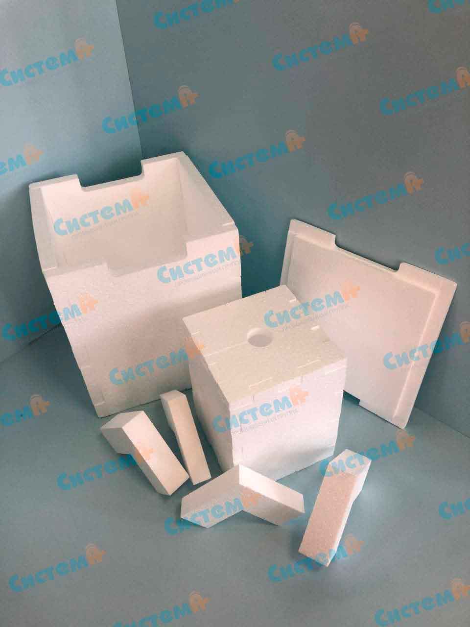 У клиента не было чертежей будущей упаковки, поэтому технические специалисты нашей компании разработали их по меркам, снятым с образца аквариума. Для надежной защиты таких хрупких предметов необходимо было выбрать легкий, но прочный материал с высокой амортизацией. Под эти критерии подходит пенополистирол – этот вспененный полимер и стал основой фиксирующих ложементов. Методом производства выбрали самую бюджетную и быструю технологию обработки пенопласта - контурную резку.